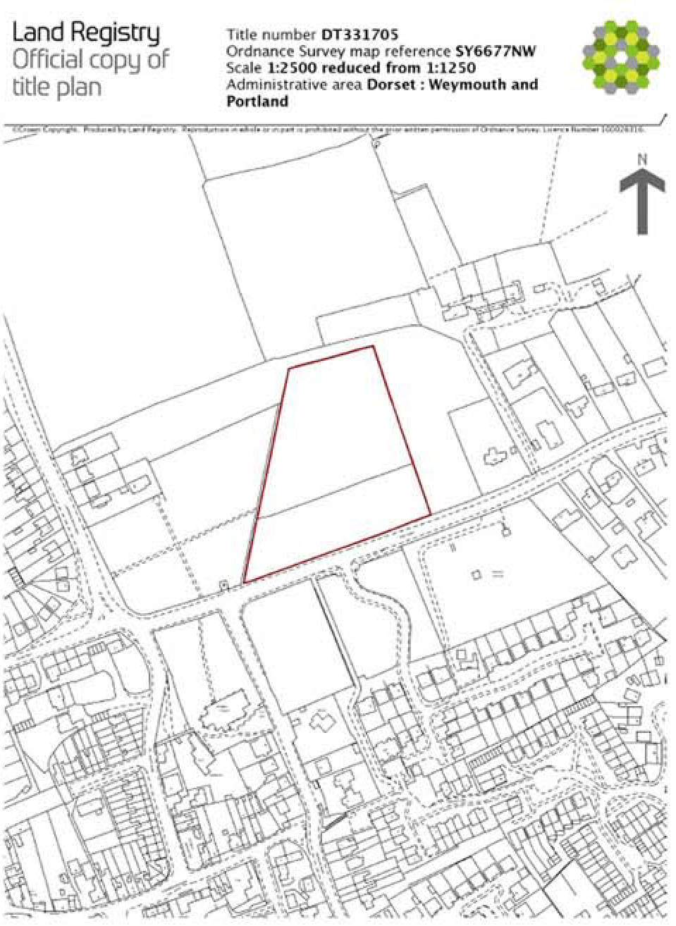 The land sits between developed areas fronting Wyke Road to both the east and west.